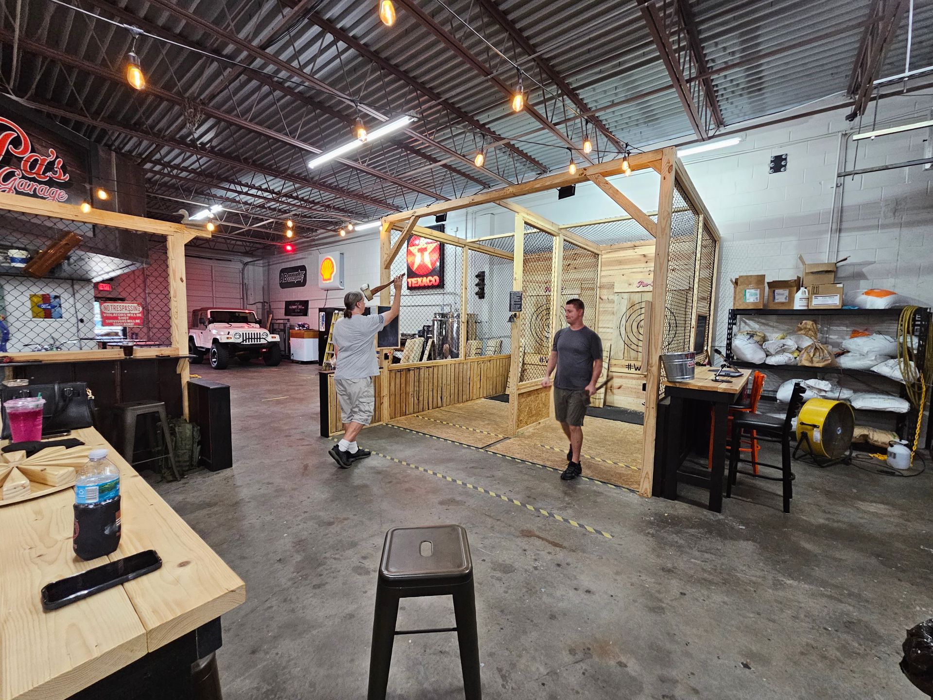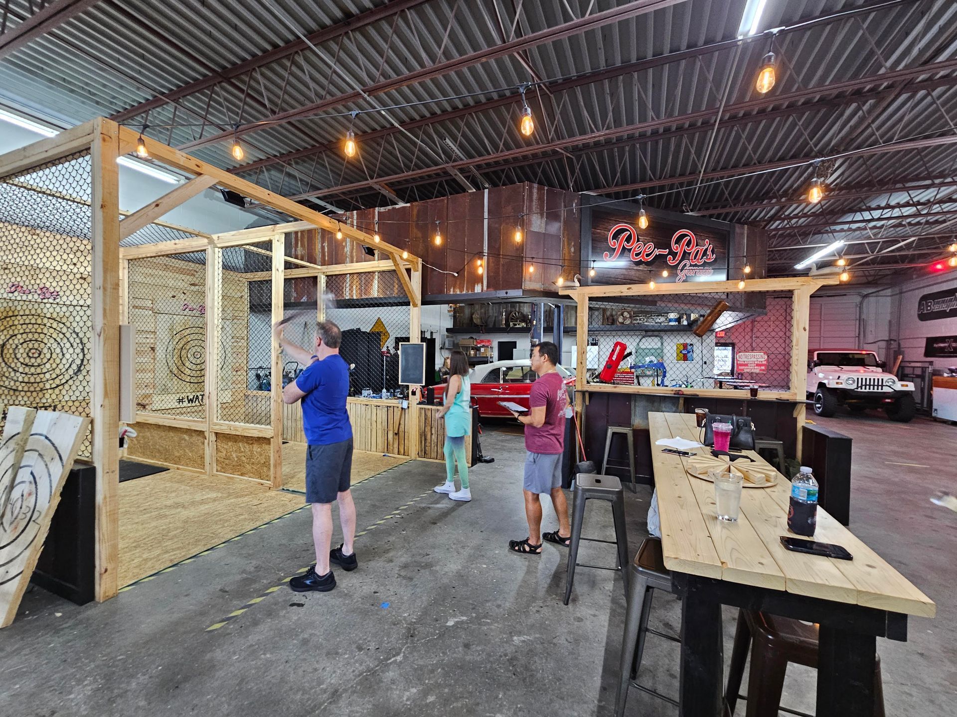 Unleash the thrill of axe throwing at the best hatchet barn in Pinellas Park. Pee-Pa's Garage Hatchet Barn offers the best in throwing lanes. Perfect for those in Pinellas Park, Largo, St. Pete, and Seminole, our new venue welcomes everyone from first-time throwers to seasoned enthusiasts. Immerse yourself in a world where precision meets fun, and every throw brings you closer to a bullseye.